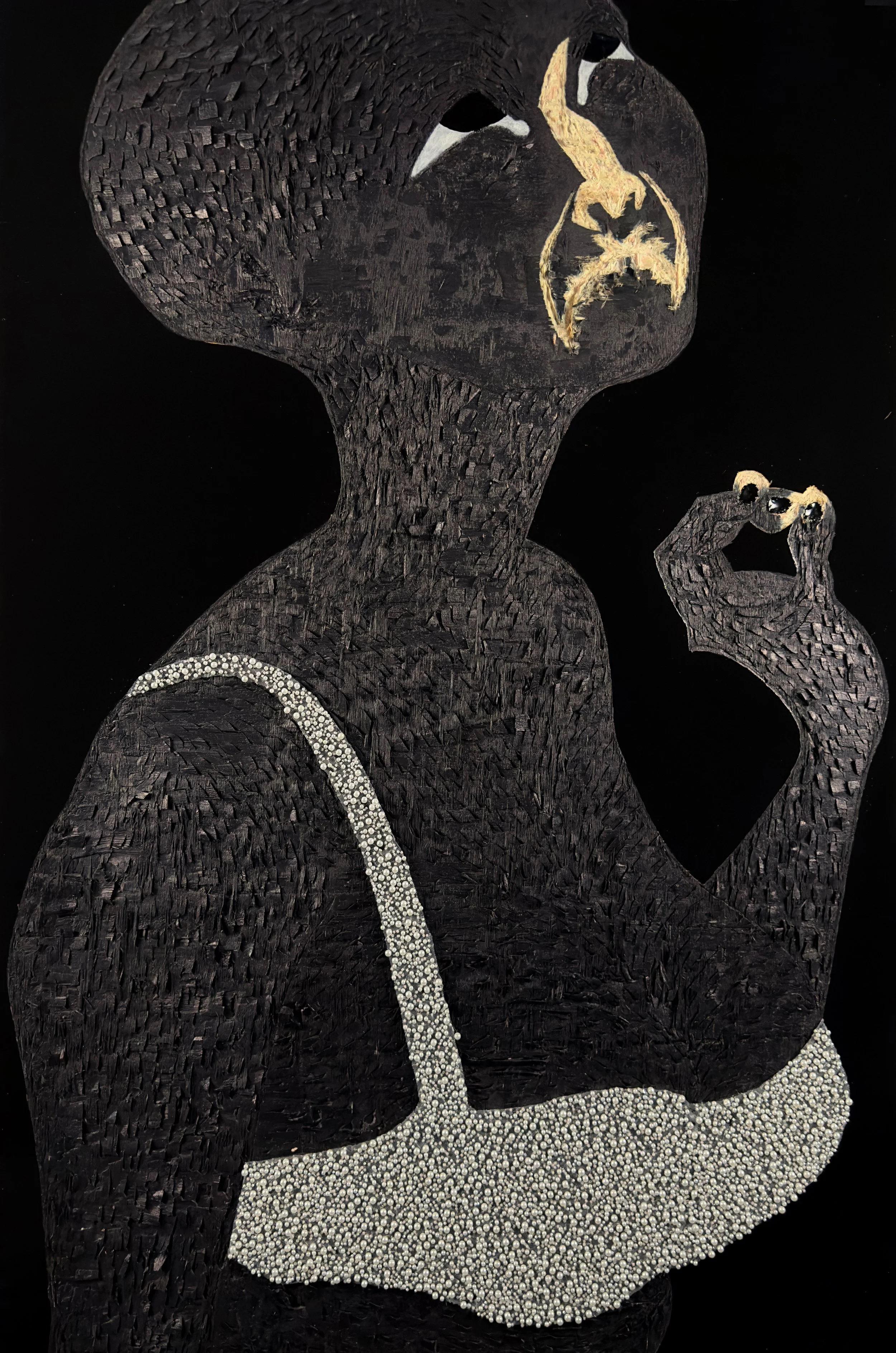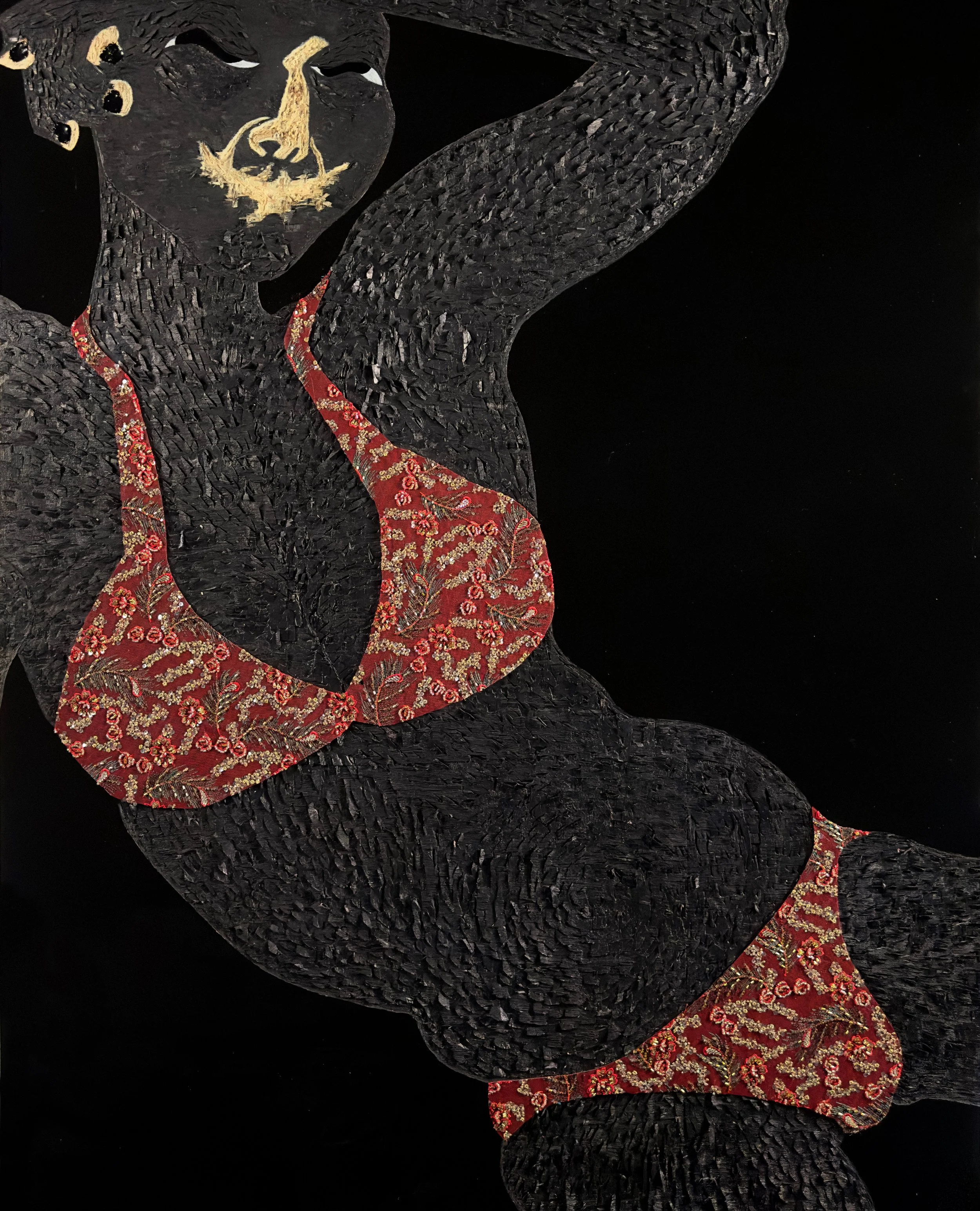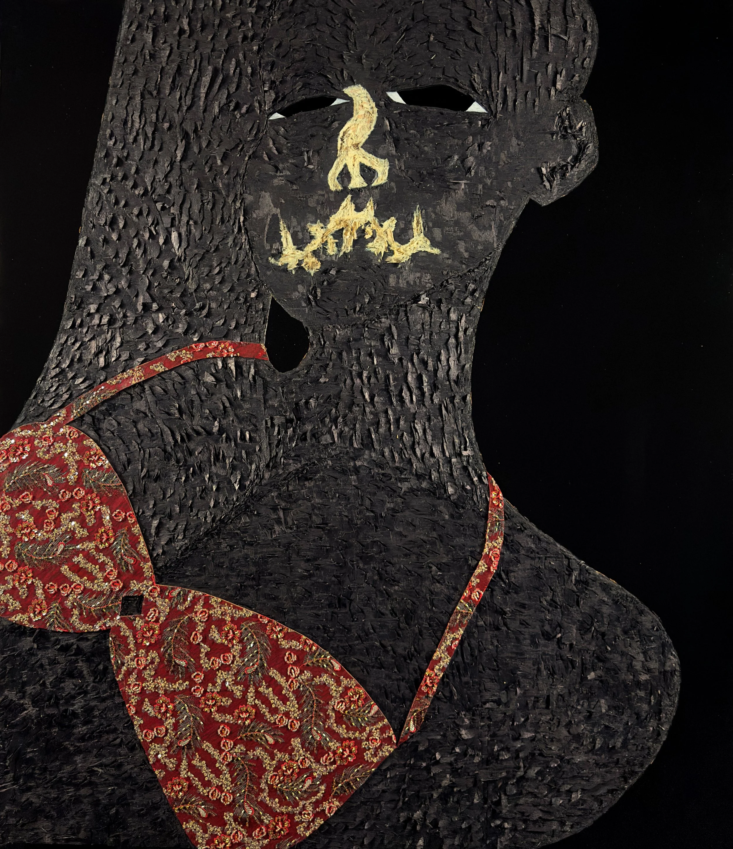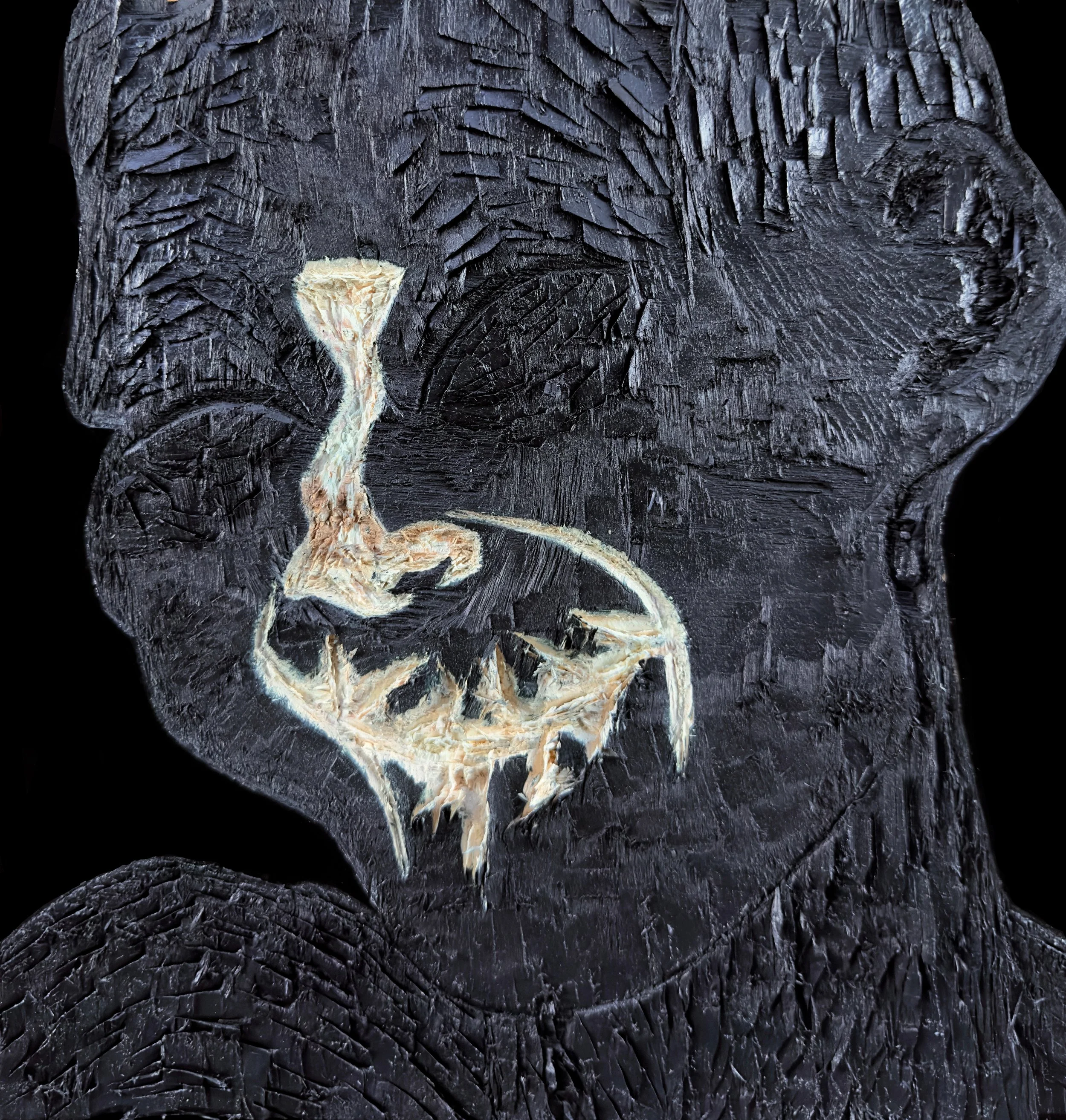 Acrylic , coffee, polyurethane, leather, lace on wood