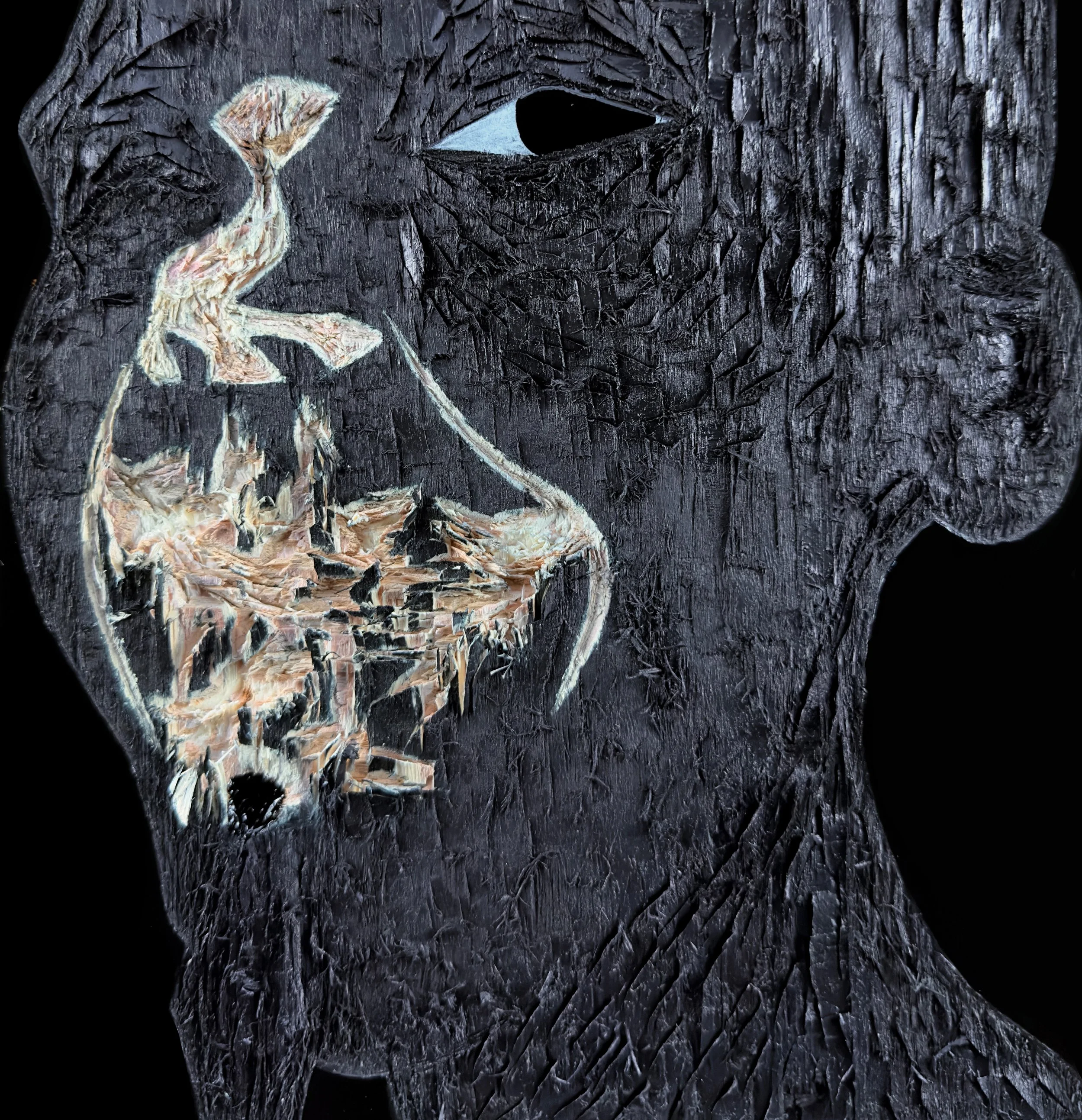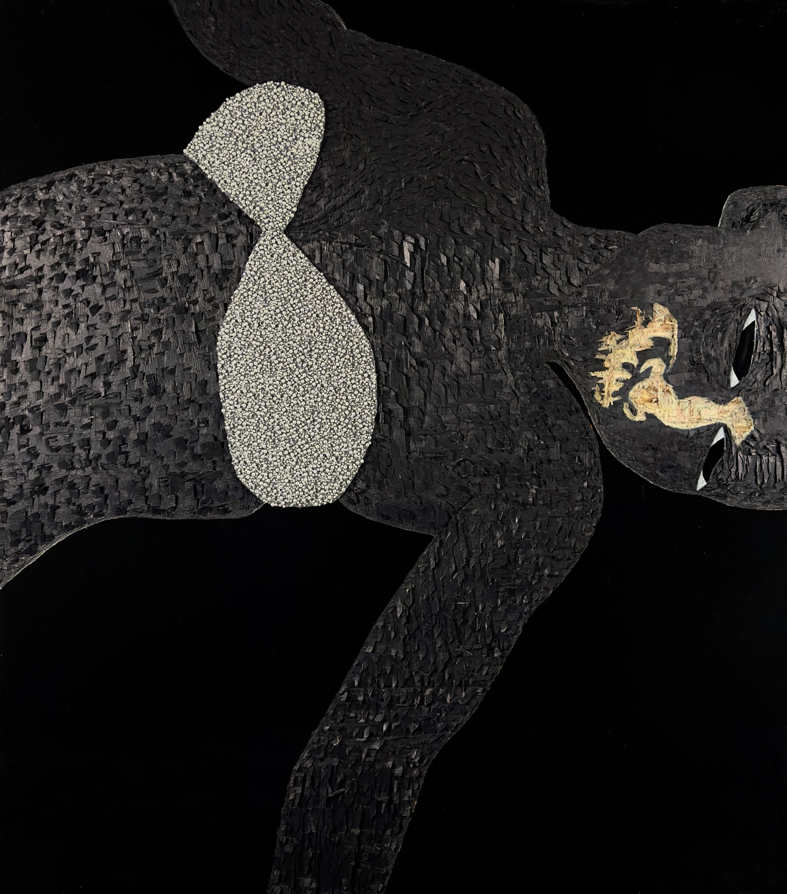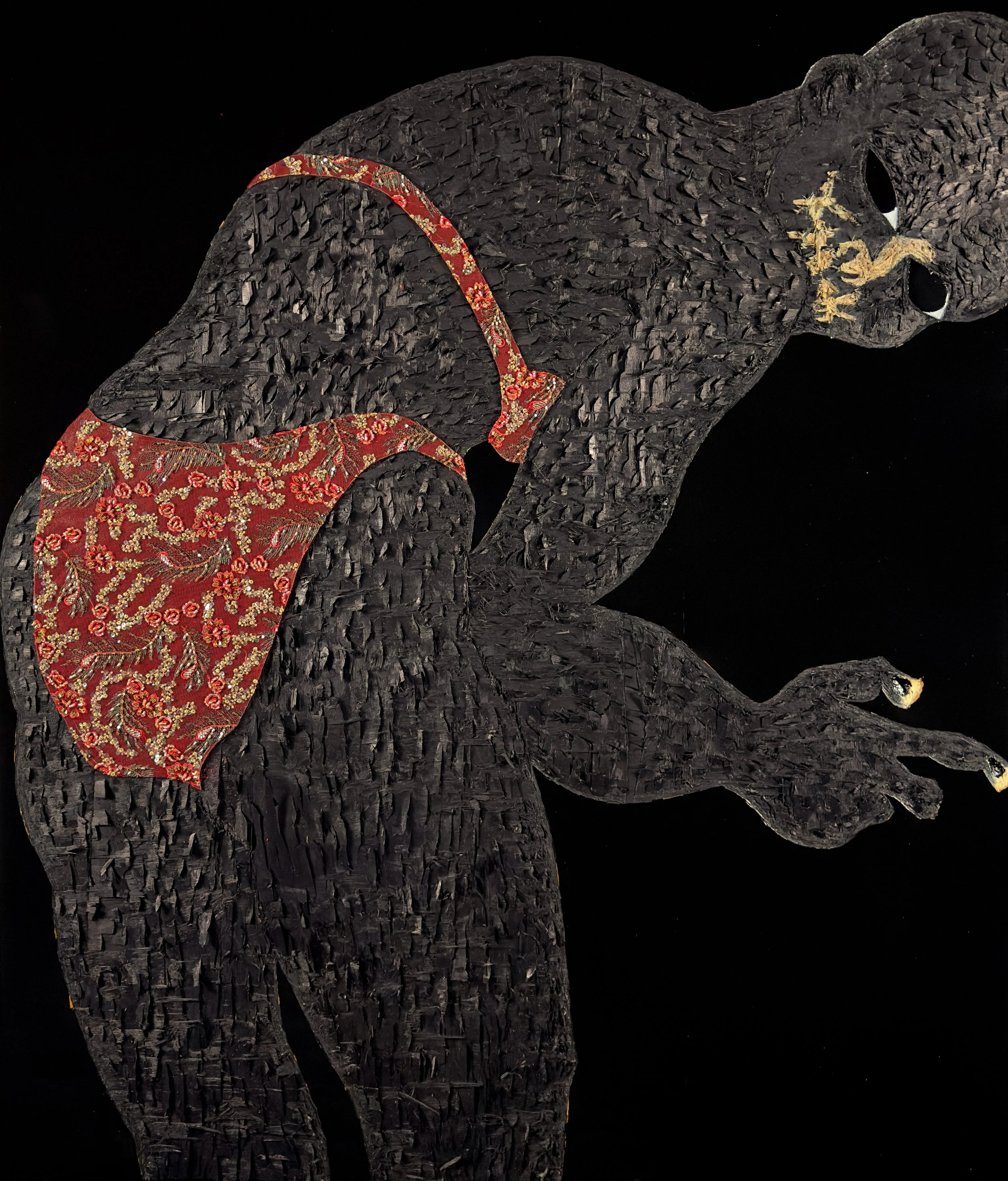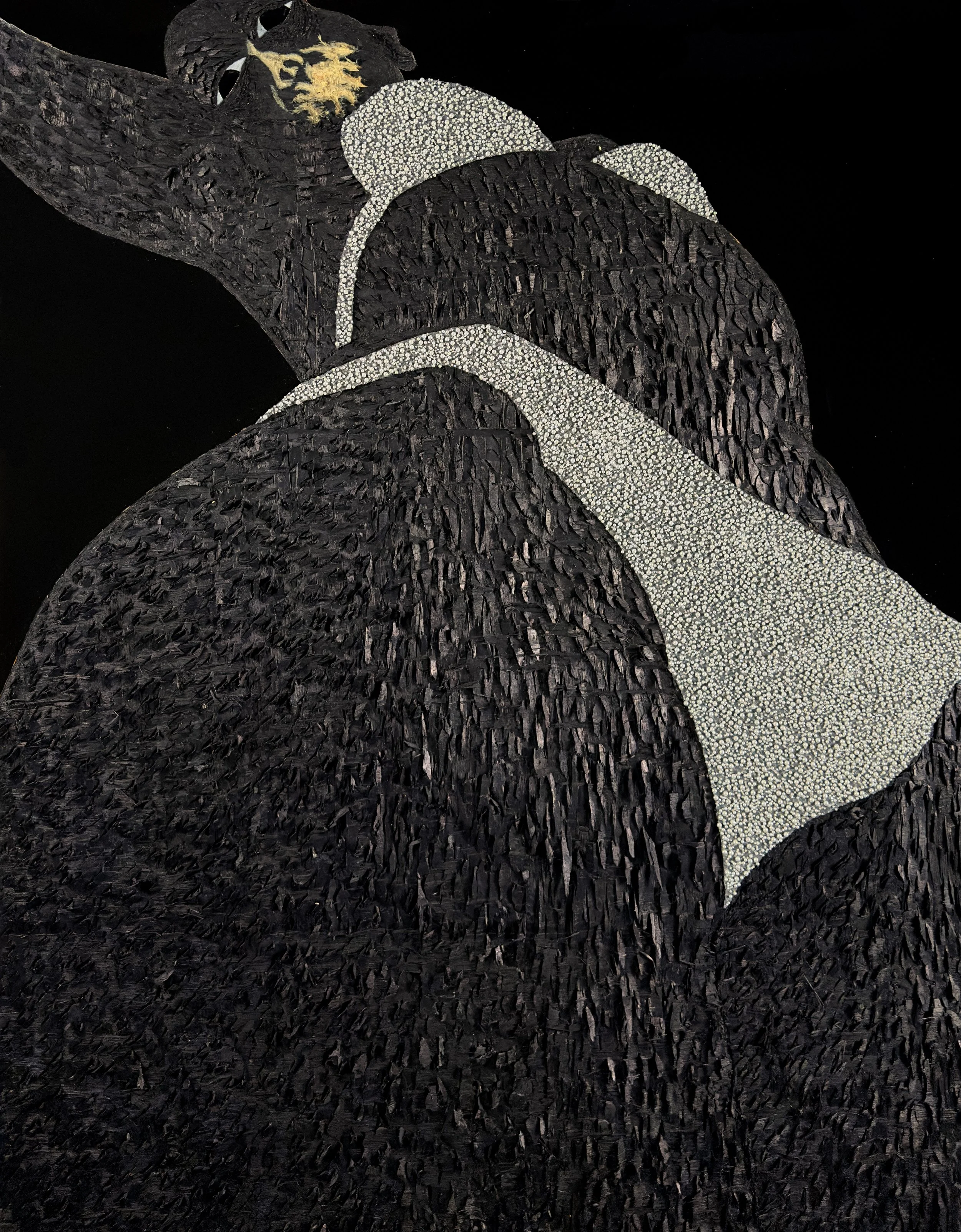 Acrylic , coffee, polyurethane, leather, lace on wood