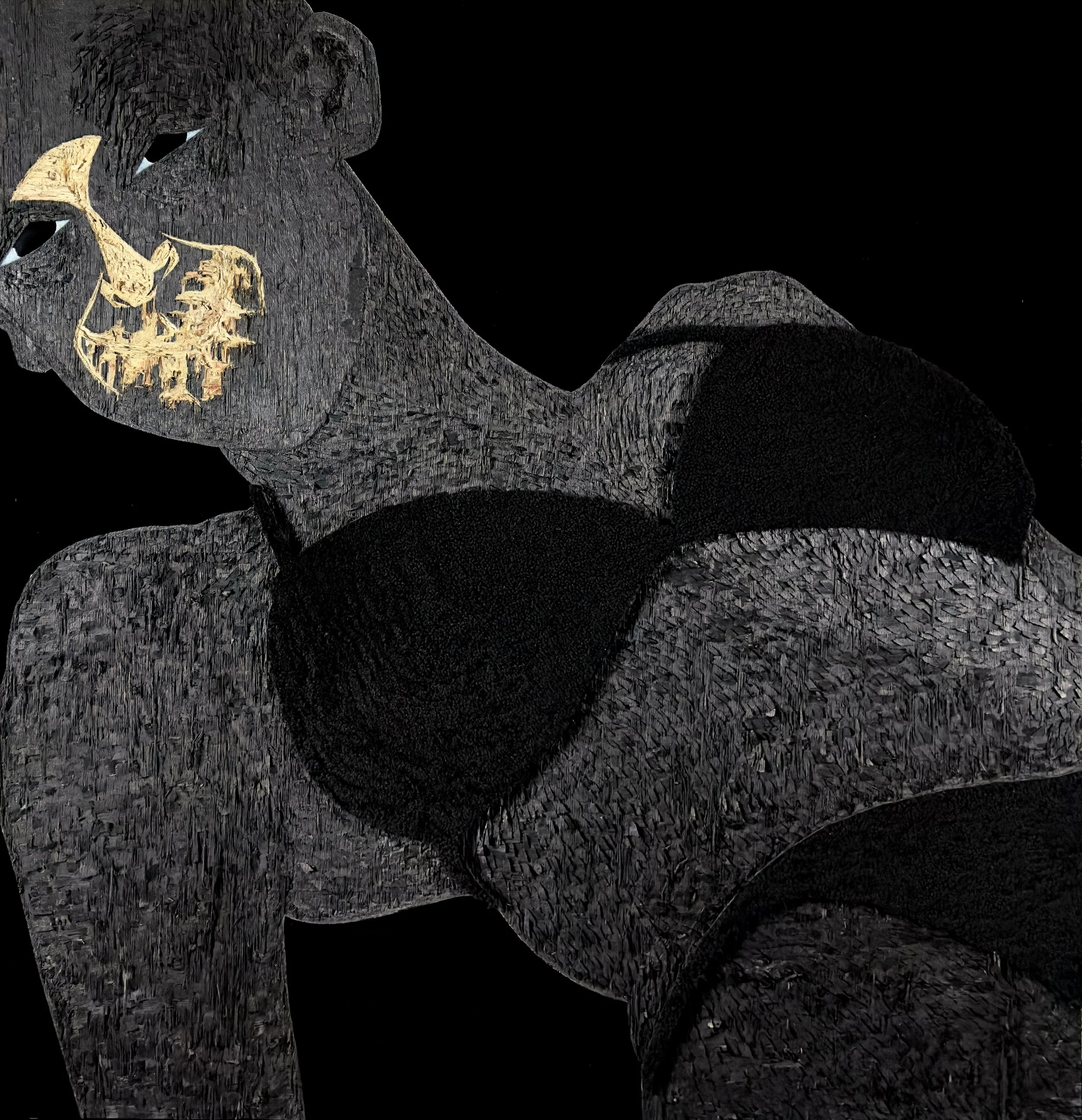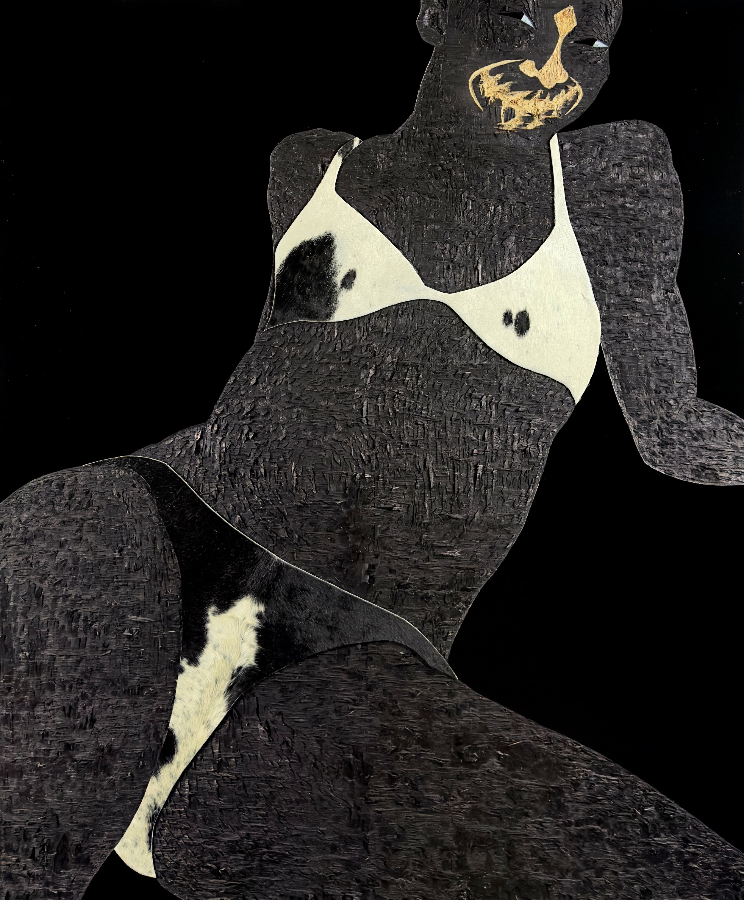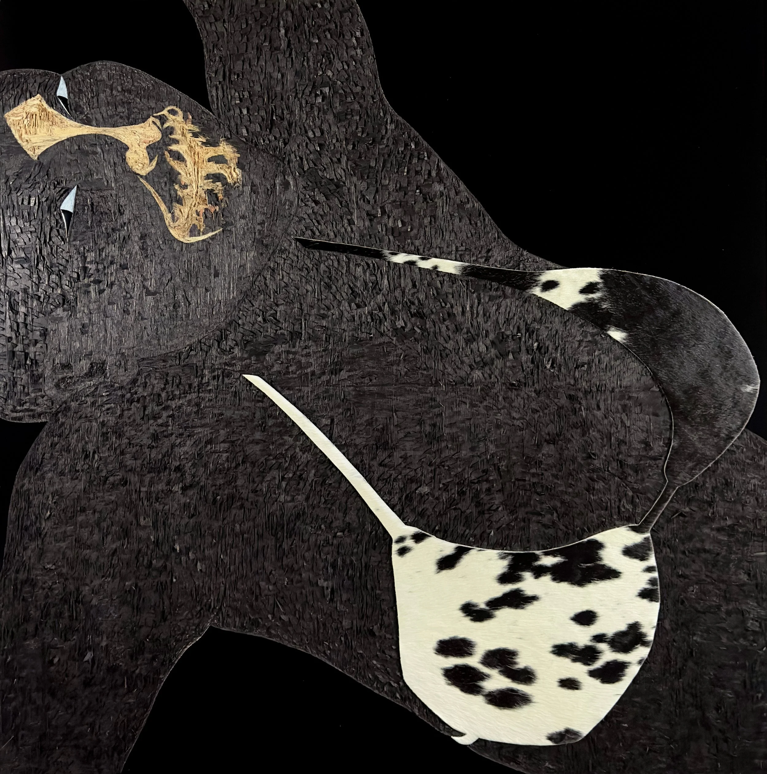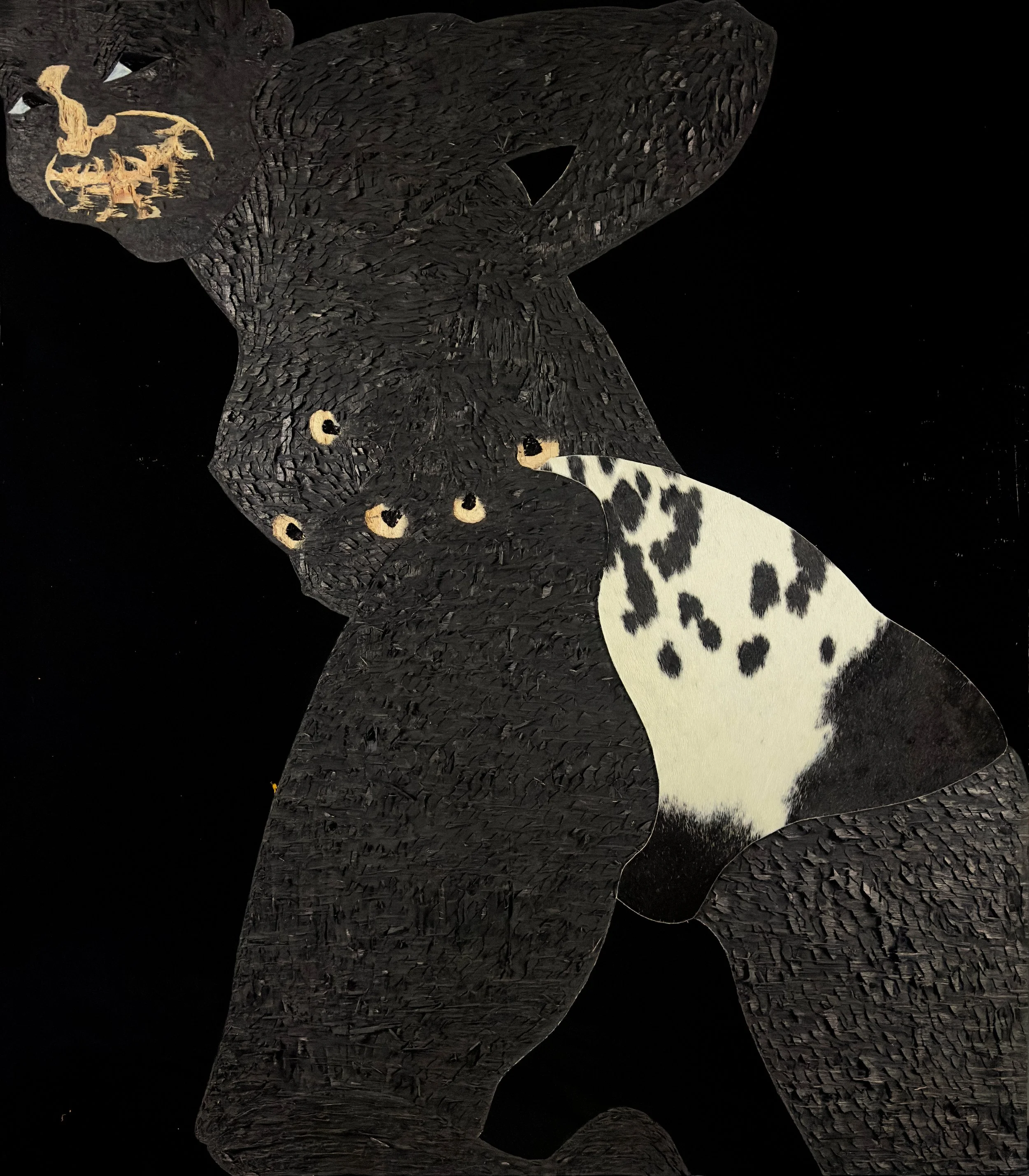Acrylic , coffee, polyurethane and leather on wood